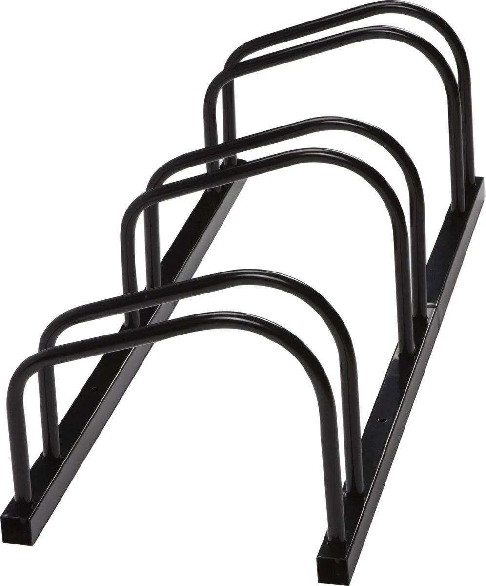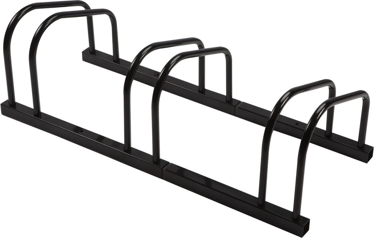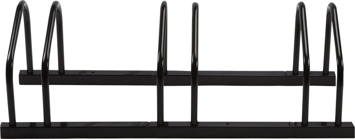 Het fietsenrek is gemaakt uit stevig zwart gepoedercoat staal. Het fietsenrek wordt geleverd als bouwpakket en zet je vliegensvlug in elkaar met het meegeleverde montagemateriaal en de handleiding. De drie beugels zijn geschikt voor fietsen met een maximale banddikte van circa 6.5 centimeter. Met een afstand van circa 25 centimeter tussen elke plek is er voldoende ruimte tussen de fietsen, zodat sturen en kabels niet in elkaar verstrikt raken. Inclusief bevestigingsmateriaal voor grond of muur. Het frame van het fietsenrek is voorzien van 4 schroefgaten. Het fietsenrek wordt inclusief 4 schroeven en 4 pluggen geleverd om het rek aan de grond of aan de muur te bevestigen.