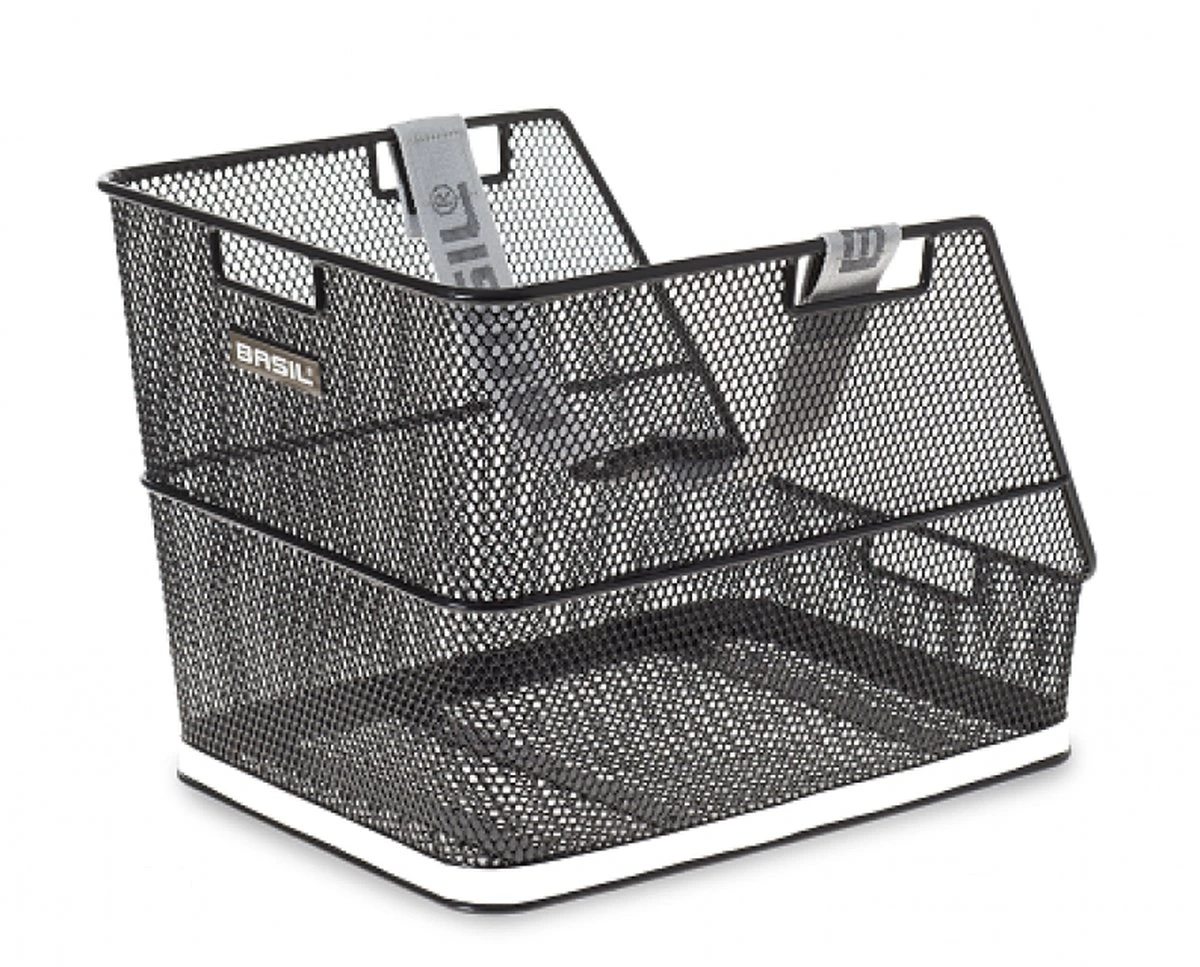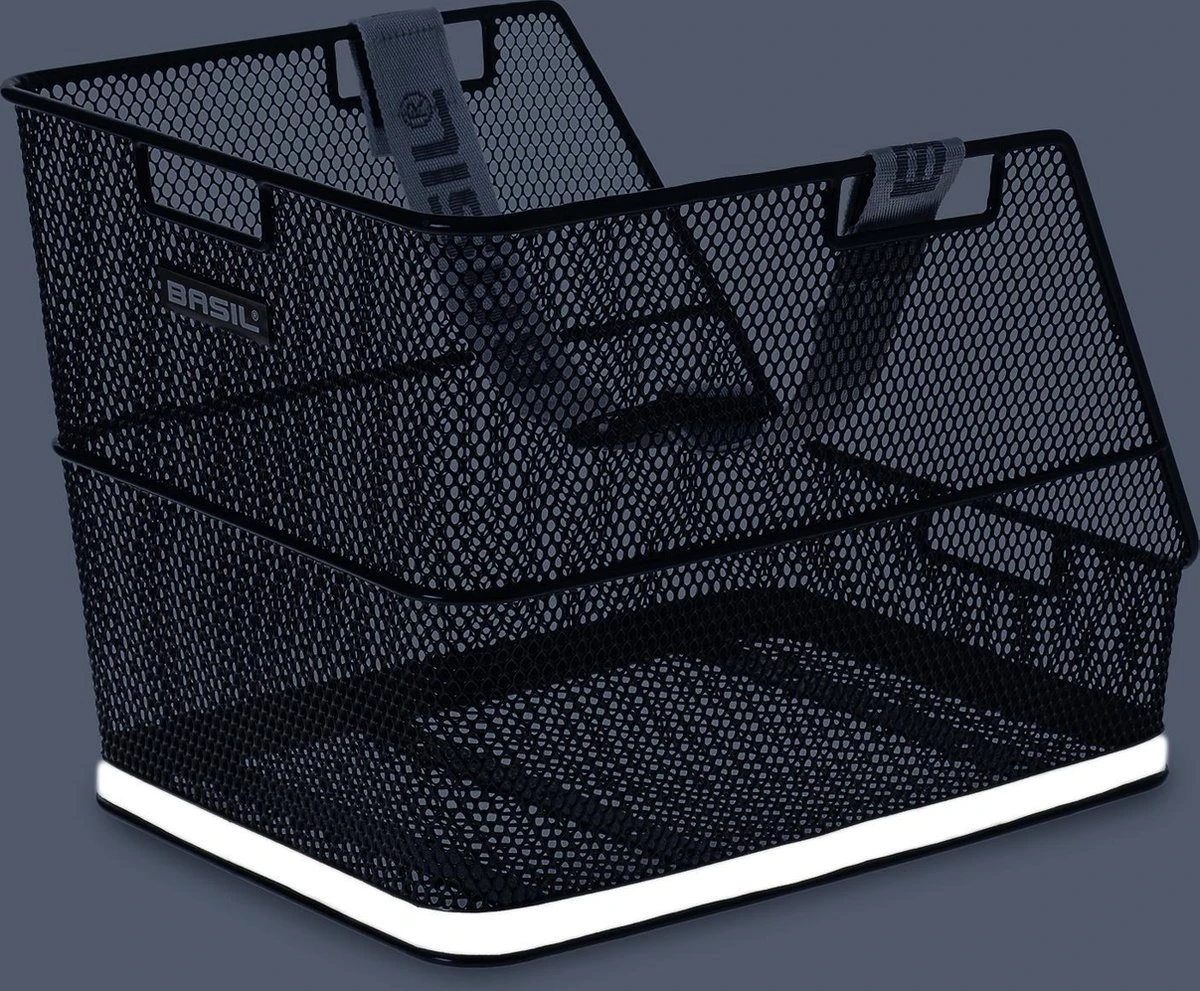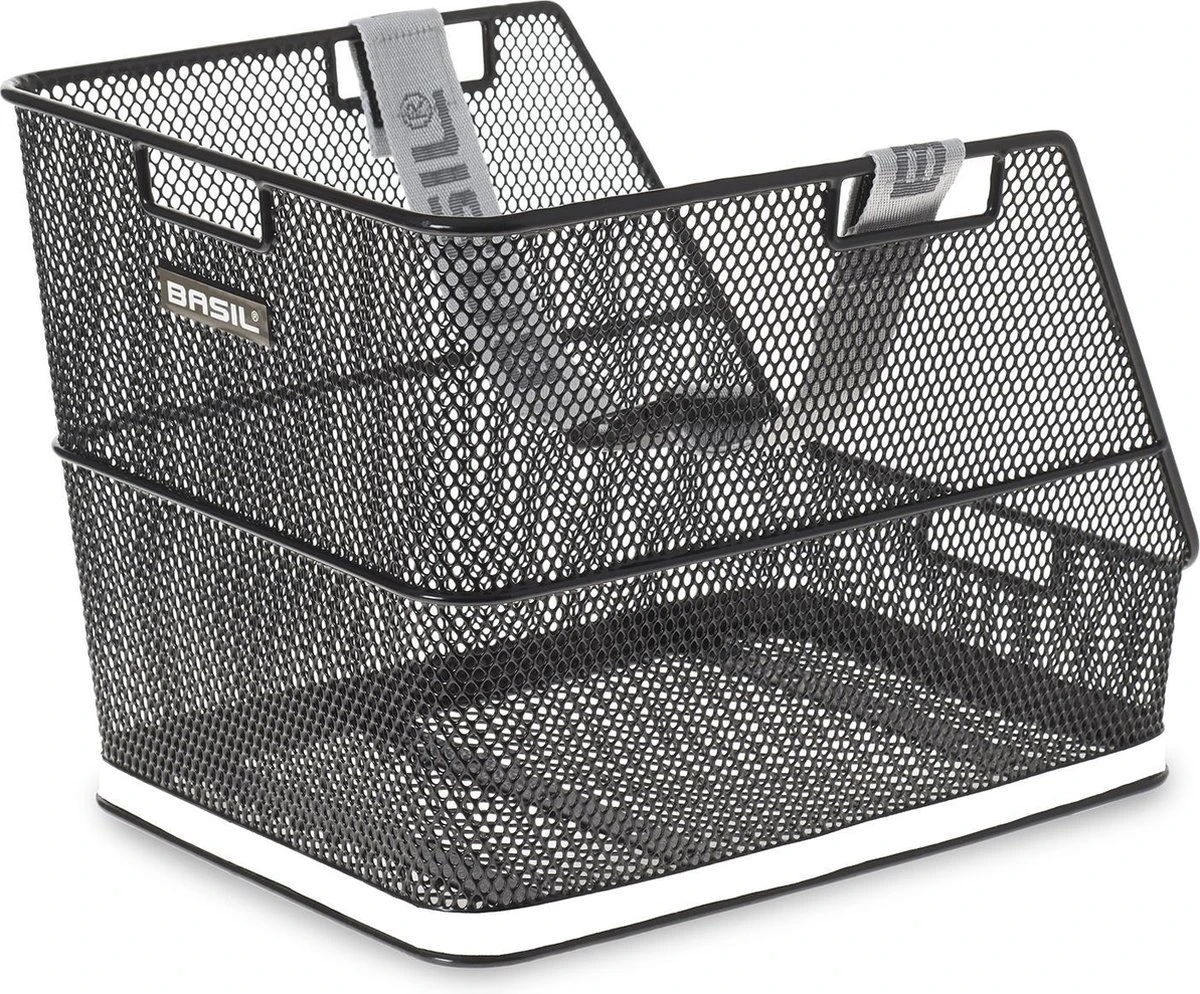 De Basil Class is een trendy en praktische schoolbag basket voor scholieren en studenten en komt voor elke fietsrit naar een school of universiteit goed van pas. Deze handige fietsmand uit de Basil collectie is verkrijgbaar in de kleur zwart. De fietsmand kan zowel door jongens als meisjes worden gebruikt voor het vervoer van een schooltas of rugzak. Het is een perfecte methode om je schooltas veilig mee te nemen op de fiets en bovendien voorkom je daarmee dat schoolboeken op straat komen te liggen. De Basil Class fietsmand is eenvoudig te monteren op de bagagedrager van je fiets. Dit realiseer je eenvoudig en snel met het bijgeleverde bevestigingsmateriaal. De bewegingsvrijheid tijdens het fietsen wordt gestimuleerd door een afgeschuinde kant van de fietsmand aan de zadelzijde. De fietsmand wordt bovendien geleverd met een afneembare band. Een schooltas of rugtas blijft daardoor te allen tijde stevig op de fiets vastzitten. In het donker ben je goed zichtbaar vanwege een reflectiestrook die zich aan de onderkant bevindt van de fietsmand. Daardoor ga je altijd veilig de weg op. Wil je nog meer fietsmanden bekijken waarmee je je schooltas veilig kunt vervoeren? Neem gerust een kijkje bij de uitgebreide Basil collectie in onze online winkel. Eigenschappen: De Basil Class fietsmand is een praktische en moderne fietsmand voor het veilig vervoeren van je schooltas. Je schooltas zet je stevig vast met de afneembare band. De fietsmand wordt geleverd inclusief het bevestigingsmateriaal voor aan de bagagedrager. Dankzij de reflectiestrook aan de onderkant van de mand, fiets je ook tijdens een donkere winterochtend veilig naar school of de universiteit.