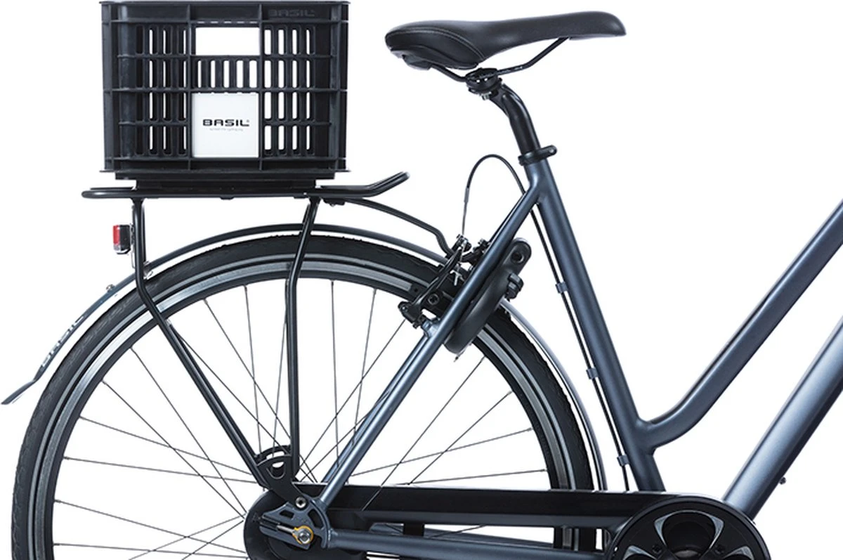 De krat kun je op meerdere manier bevestigen. Voor een vaste montage kun je gebruik maken van de Basil Crate mounting set. Wil je de mand afnemen? Kies dan voor bevestiging met een adapterplaat. De krat is namelijk ook geschikt voor MIK, Racktime of AtranVelo adapterplaten. Deze adapterplaten dien je apart aan te schaffen.