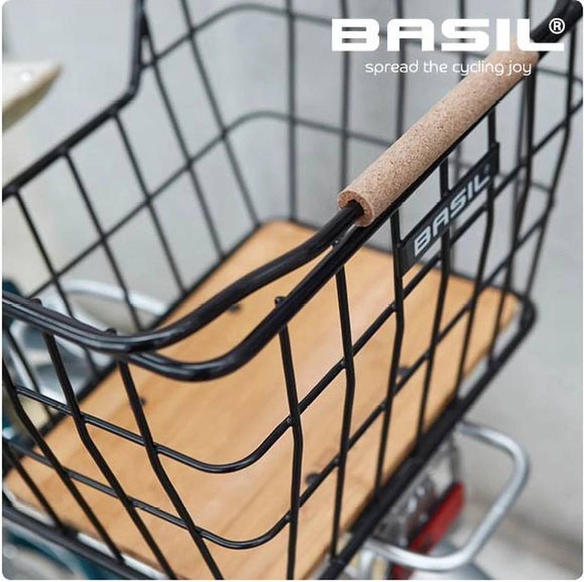 Ben je op zoek naar een moderne fietsmand? Dan is de Basil Nordland MIK fietsmand iets voor jou! De afneembare mand is gemaakt van een robuust staal in combinatie met een bamboe bodem. Met een inhoud van 23 liter is de mand ideaal voor het doen van je dagelijkse boodschappen. Zo komt de mand van pas bij je wekelijkse bezoek aan de markt. Daarnaast kun je er gemakkelijk je handtas in kwijt. Je bevestigt de mand eenvoudig dankzij de voorgemonteerde MIK-adapterplaat. Met deze adapterplaat klik je de mand eenvoudig in jouw bagagedrager of voordrager met MIK-profielen of een MIK-bagagedragerplaat. Wil je de mand meenemen de winkel in? Dan klik je de mand er net zo gemakkelijk weer af. De mand neem je comfortabel mee dankzij de handgreep. Deze handgreep is gemaakt van rubber en kurk. De MIK-adapterplaat past op veel bagagedragers, dames-, heren-, en de elektrische fiets. Eigenschappen: Moderne, afneembare fietsmand voor je dagelijkse boodschap. Geleverd inclusief voorgemonteerde MIK-adapterplaat, zodat de mand op bijna elke bagagedrager past en gemakkelijk afneembaar is. Gemaakt van robuust staal met een bamboe bodem. Eenvoudig te bevestigen op elke fiets, ook E-bikes!