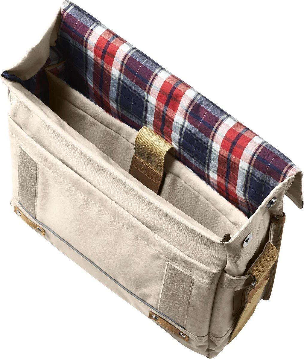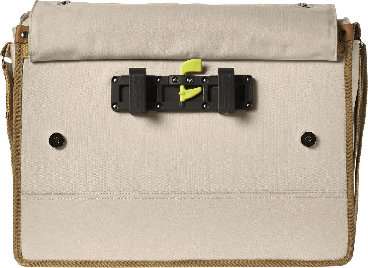 De Basil Portland Messenger is een crÌÎåÂmekleurige stijlvolle fietsschoudertas met een inhoud van 16-20 liter, voorzien van een Hook-On System, regenhoes, 15 inch laptopvak en reflectiedetails.br /br /De Basil Portland Messenger is een crèmekleurige laptopfietstas voor de professional met een actieve levensstijl. Deze fietstas is tot in te kleinste details stijlvol afgewerkt en maakt jouw businesslook compleet. Het hoogwaardige materiaal, de hippe binnenvoering met ruiten en beige (washable paper) details zorgen voor een vintage uitstraling. De fietstas is voorzien van een handvat, verstelbare schouderriem en gevoerd laptopvak voor 15 inch laptops, waardoor de tas ideaal is om mee te nemen naar je werk. Ook bij de fietsrit naar de supermarkt of sportschool komt deze fietstas goed van pas. Naast het laptopcompartiment zijn er vakken aan de zijkant, een ritsvak en ruim vak aan de binnenkant aanwezig. De bijgeleverde regenhoes maakt de tas regenbestendig. De inhoud varieert van 16 tot 20 liter, het ligt er maar net aan in hoeverre de tas gevouwen is. Zo heb je ruimte genoeg voor je laptop, boodschappen of andere benodigdheden. Met het Hook-On System kun je de tas eenvoudig aan diverse bagagedragers (ook e-bikes) haken. Dit systeem is netjes weggewerkt met behulp van een flap met magnetische sluitingen. Gecombineerd met de Basil Portland Front Carrier kan de tas ook voorop geplaatst worden. De reflectiedetails maken je beter zichtbaar in het donker. Deze Basil Portland Messenger is onderdeel van de Portland collectie. Wil jij meer van deze collectie zien? Kijk hier verder. Eigenschappen: