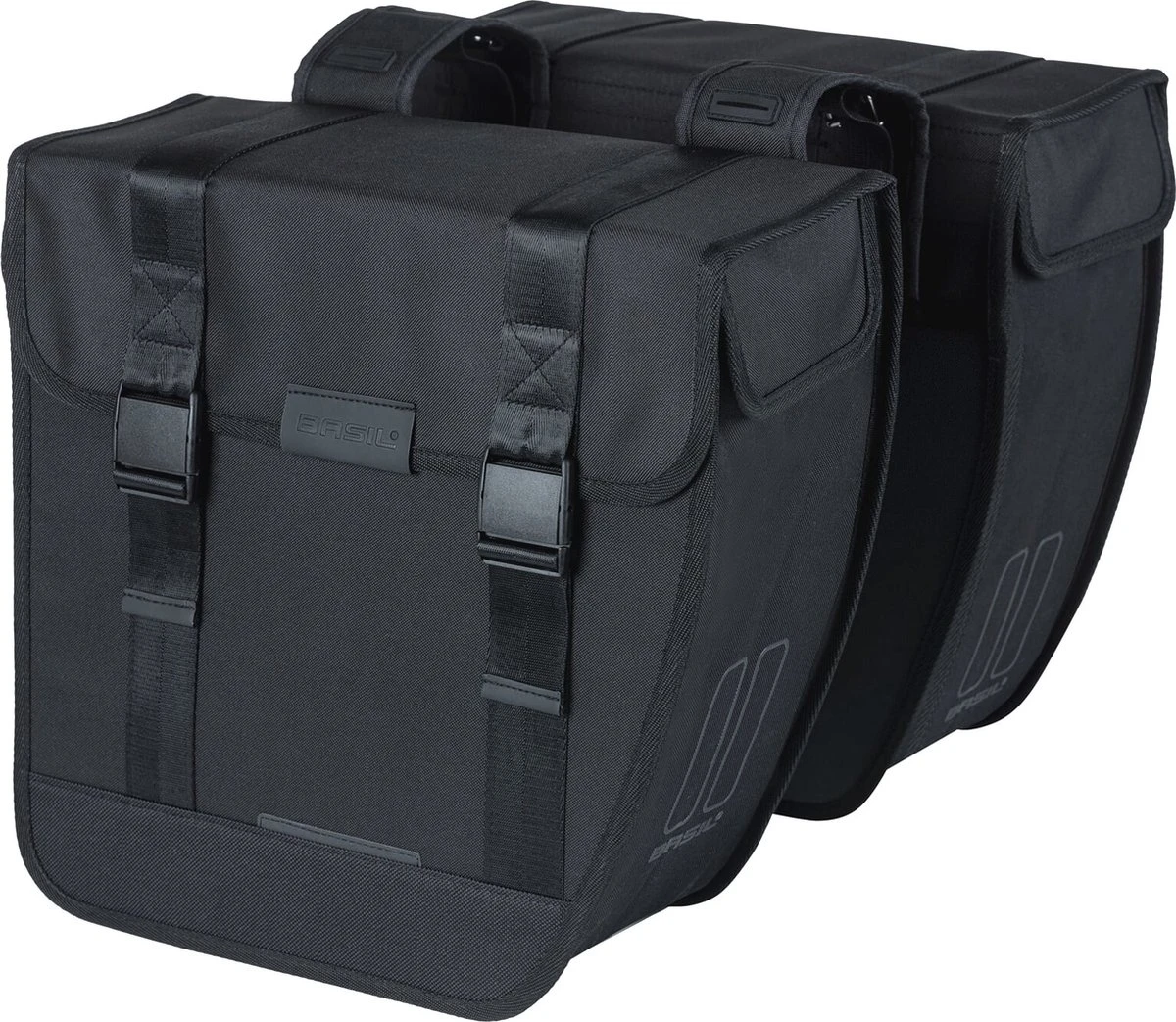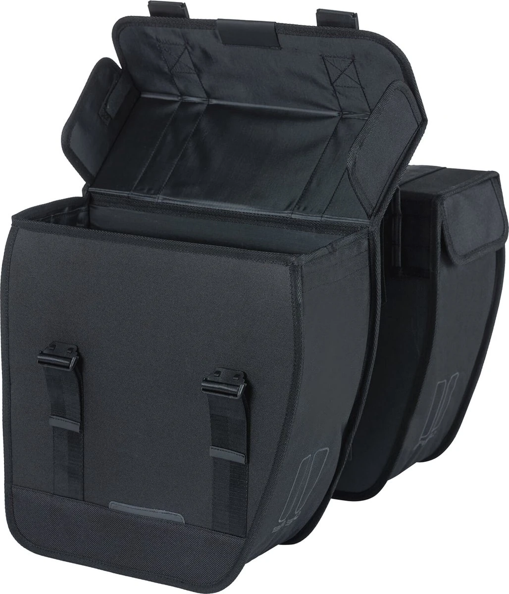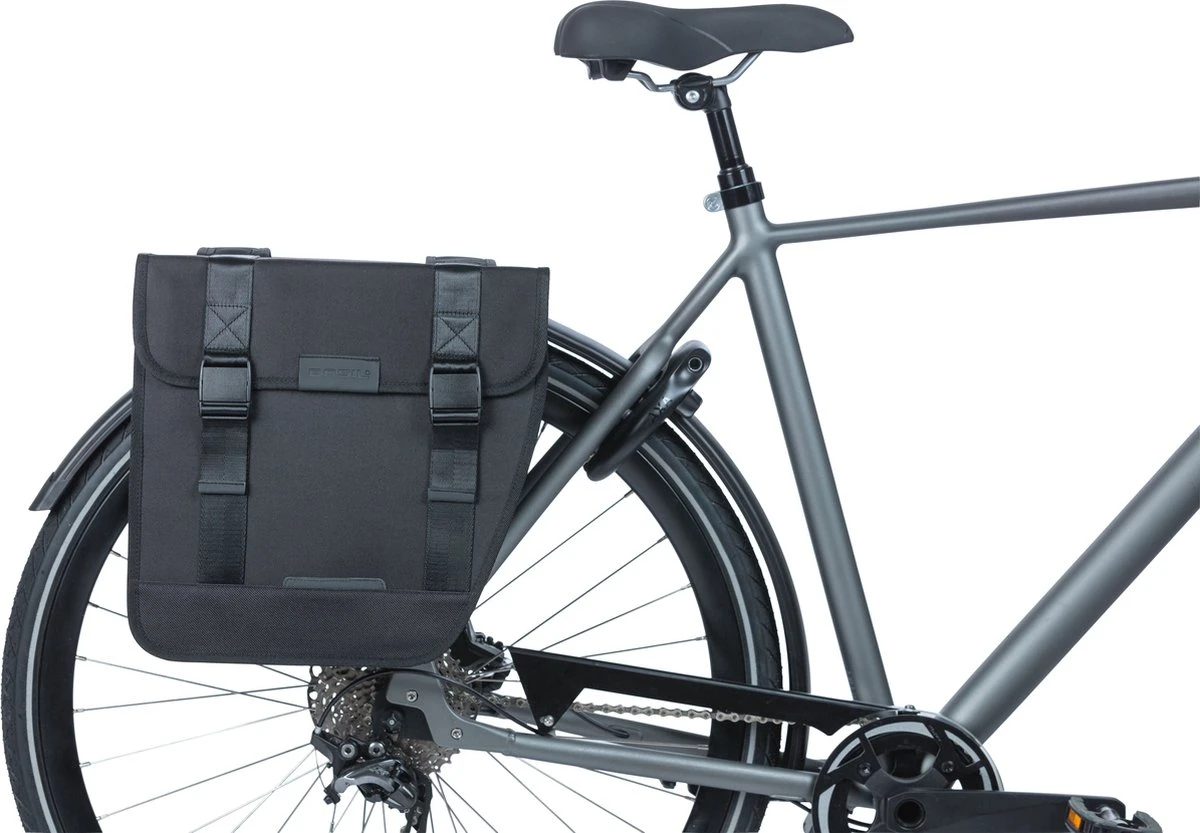De Basil Tour is een stijlvolle dubbele fietstas met een inhoud van 28 liter. De zwarte fietstassen zijn geschikt voor zowel een dames- als herenfiets.