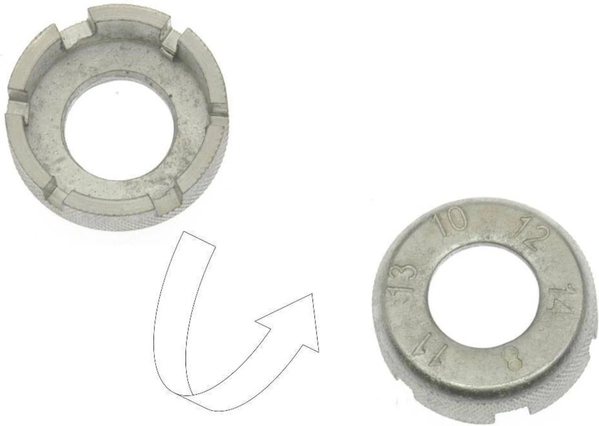 - Voor spaken van grootte: 8, 10, 11, 12, 13, 14 mm.