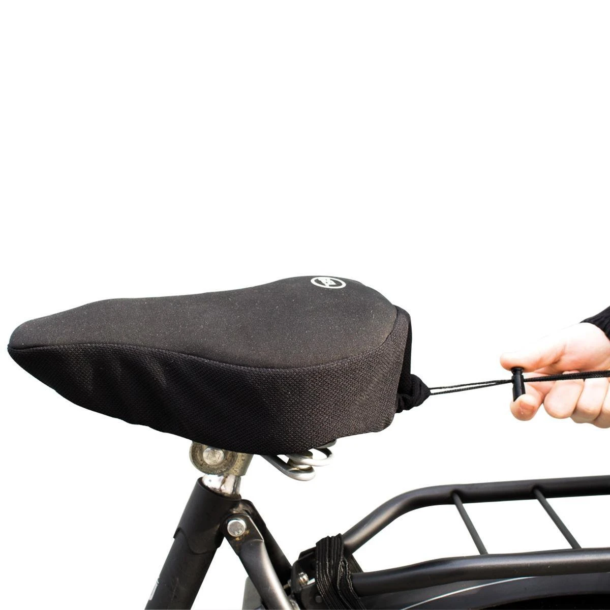 Deze fietszadelcover is circa 24 x 27 centimeter en past daardoor op elk standaard fietszadel. Door het koord aan de achterkant van het zadeldekje aan te trekken en met de koordstop vast te zetten, maak je het op een eenvoudige manier passend. Ook zorg je er zo voor dat het niet gaat verschuiven.