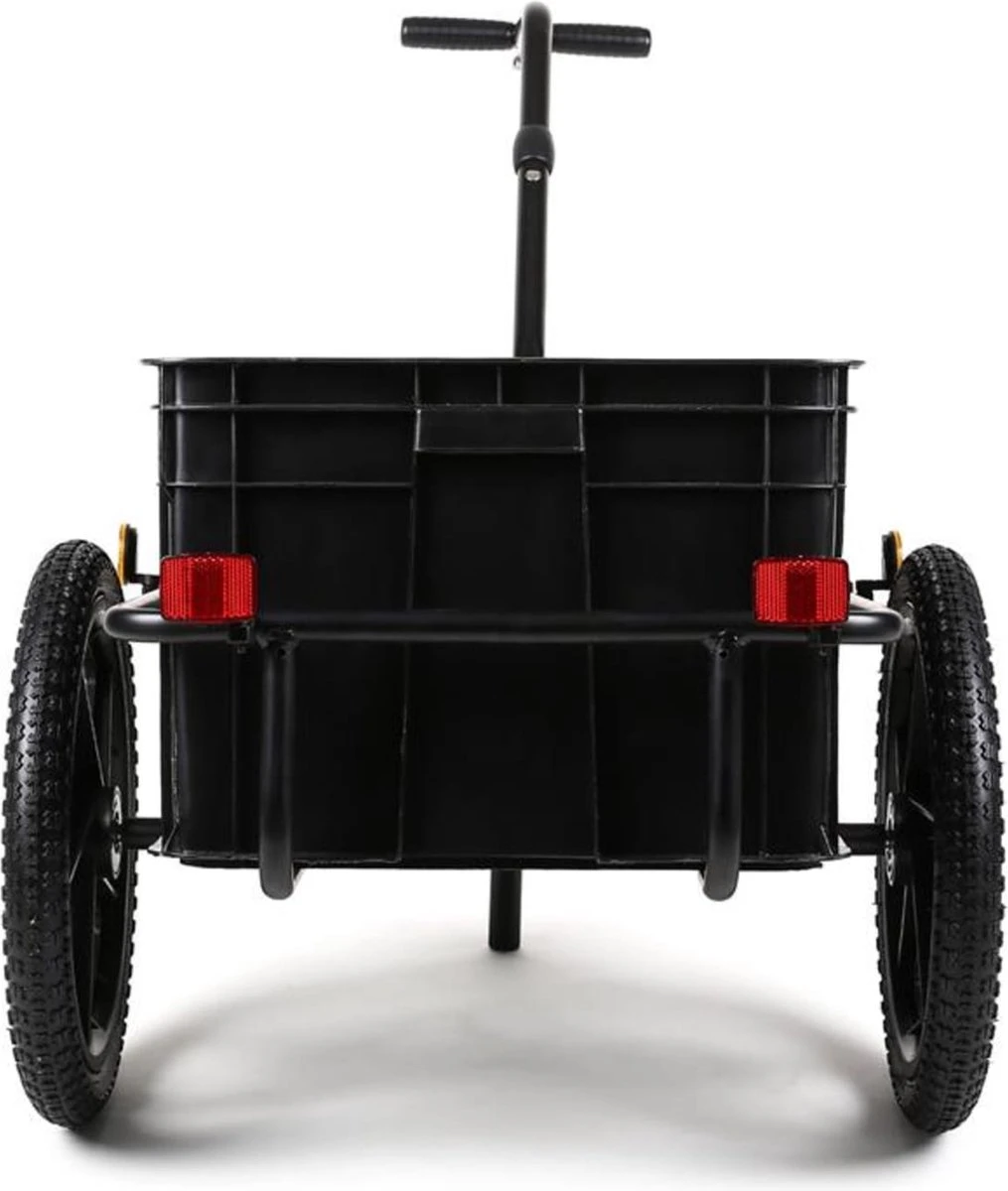 Ook bij het winkelen is de Big-Black-Mike goederenaanhanger een grote steun. Hij kan het aan dat er twee kratten op de robuuste metalen behuizing geladen en naar huis getransporteerd worden zonder op te geven. Naar keuze kan hij ook moeiteloos van het rijwiel losgemaakt worden en als handwagen gebruikt worden – een hoge dissel met kogelkoppeling zorgt daarbij voor een bliksemsnelle montage. De handgrepen hebben een aangename hoogte voor het gebruik als handwagen en via de te monteren voet laat de Duramaxx aanhanger zich veilig afstellen op kasseien, grind en gazon.