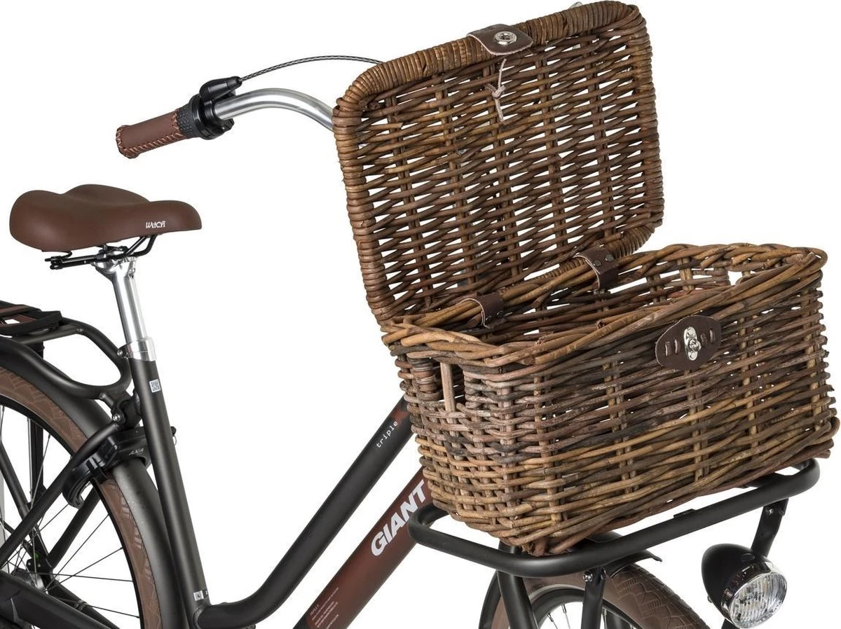 Onze handgemaakte Fastrider Sera Rotan Fietsmand met klep, met zijn stevige handvatten en weefpatroon, geeft je fiets een robuuste natuurlijke uitstraling en biedt uiteraard genoeg draagruimte voor je boodschappen of andere bagage. Hij is gemakkelijk op je voordrager te bevestigen door middel van de 4 meegeleverde tyraps.