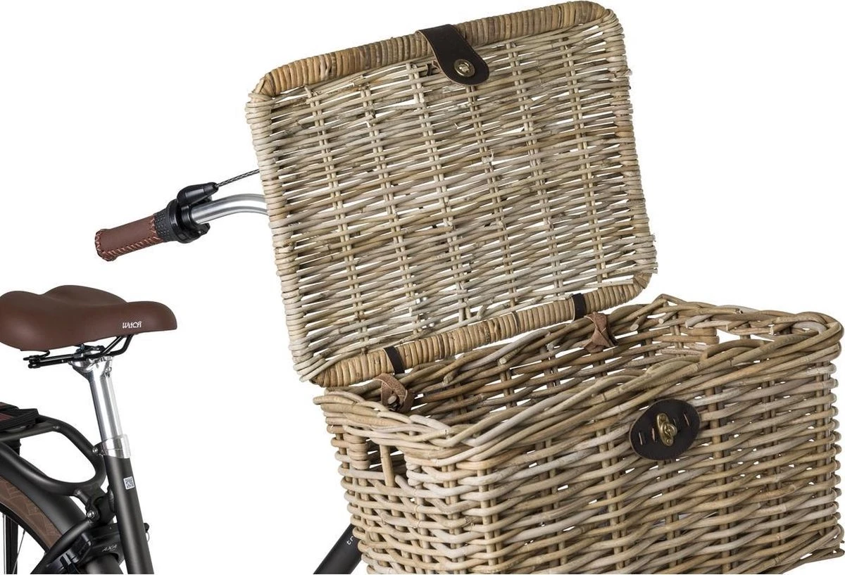 Onze handgemaakte Fastrider Sera Rotan Fietsmand met klep, met zijn stevige handvatten en weefpatroon, geeft je fiets een robuuste natuurlijke uitstraling en biedt uiteraard genoeg draagruimte voor je boodschappen of andere bagage. Hij is gemakkelijk op je voordrager te bevestigen door middel van de 4 meegeleverde tyraps.