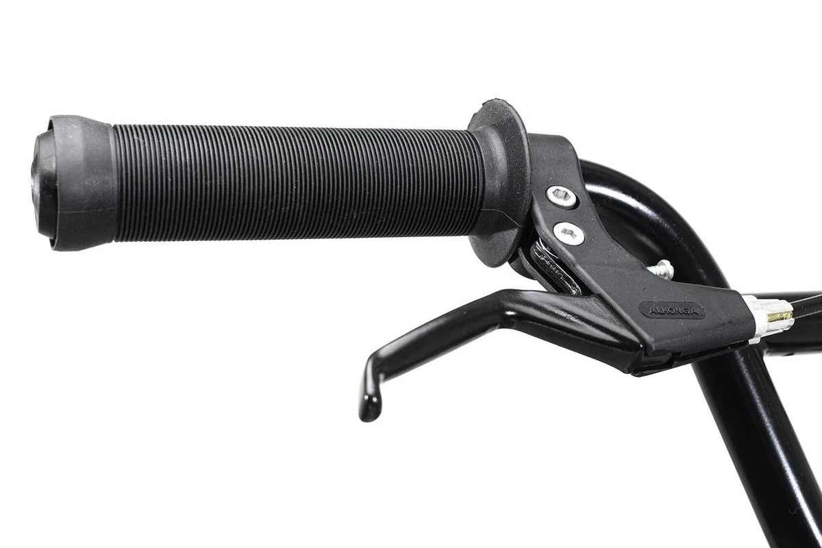 De stoere bike voor de allerlaagste prijs overtuigt echter ook door zijn technische uitvoering: uiteraard is de fiets uitgerust met een 360°-rotor, waardoor het stuur helemaal rond kan. Voor trucs en moves worden vier stalen pegs bijgeleverd – uiteraard in zwart! Remmen kun je met V-brakes voor en achter.