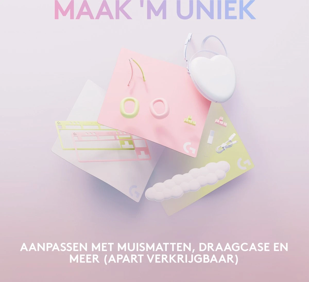 - Ook uit de Aurora-collectie: gaming accessoires die het beste samengaan; G705 Logitech-muis, G715 Logitech-keyboard en G735-headset delen hetzelfde inclusieve ontwerp en dromerige esthetiek; afzonderlijk verkrijgbaar.