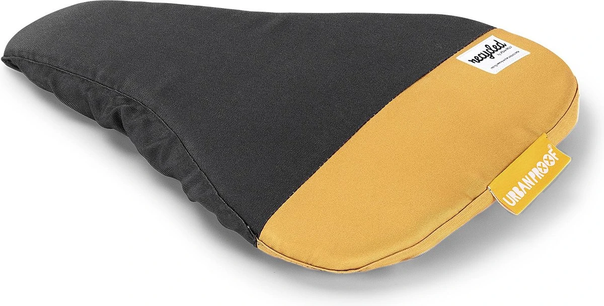 Het grijs met gele Recycled zadeldek van Urban Proof is gemaakt van 100% gerecycled polyetheen (RPET), een verantwoorde keuze dus! Het materiaal is daarnaast ook nog eens waterafstotend, wel zo comfortabel. Door de elastische band blijft het fietszadeldekje goed zitten en is deze universeel te gebruiken.